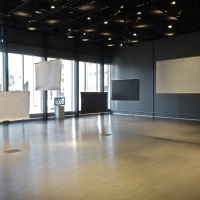 The visual-auditory work consists of identical rectangular surfaces, for example made of paper, plaster or cardboard, which are arranged or defined in relation to each other in the room. They are equipped with a loudspeaker, amplifier and audio player. The audio files are recordings of a performance in which the material on which the sound is played is stroked across the surface with a circular gesture, using the hand in a fixed rhythm and in a fixed form. This 13-minute action is recorded for each material and played back via the loudspeaker over the same material. Depending on the space and material, the arrangement of the rectangles can change daily.