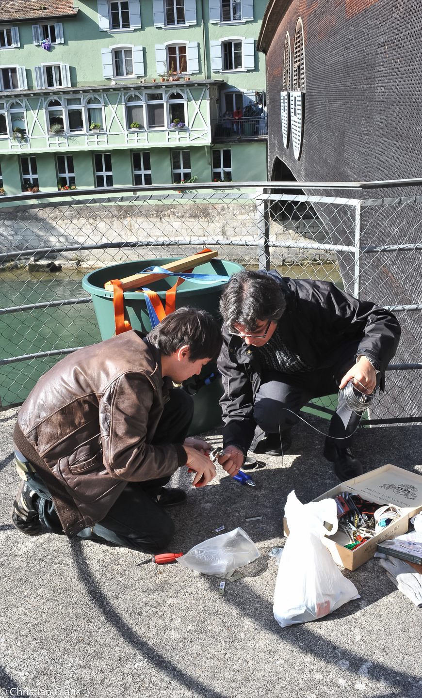 Cyrill Lim, Valerian Maly and Klara Schilliger failed miserably in their ambitious attempt to recreate Gattoni's giant weather harp on the old wooden bridge in Baden in a kind of historical reconstruction. Several tonnes of pressure – generated by the tension of the strings – would probably have caused the wooden bridge to collapse.