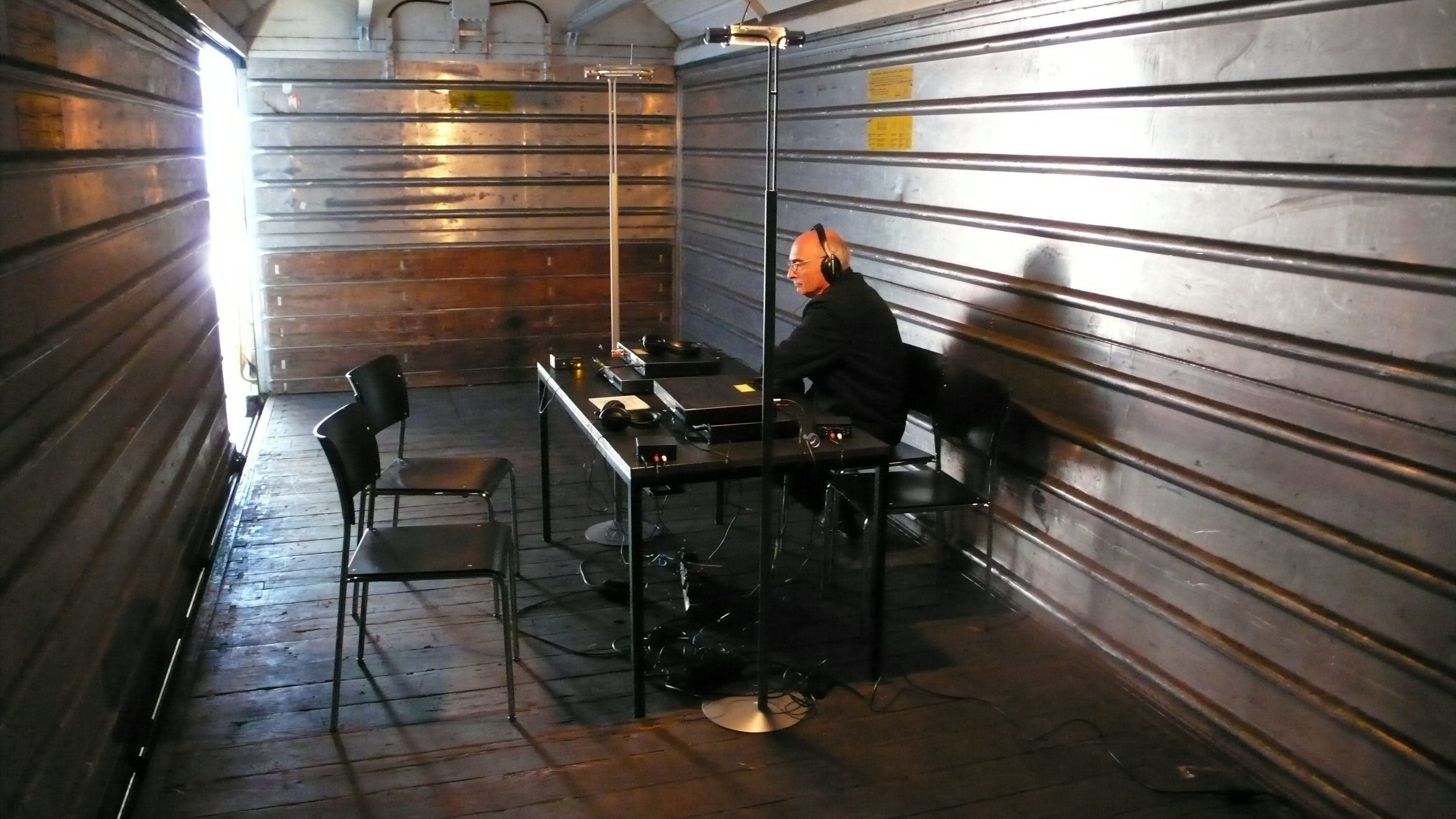 Starting with the purest sound material, a sine wave, overtone structures and noises are added and distorted by means of excessive repetition of playback and recording using various devices. But they are also filtered out again. Only with the supporting and transmitting media is this initial sine wave musically shaped and turned into sound. The theme here is the distortion of the image by the media and the self-reflection of the medium.