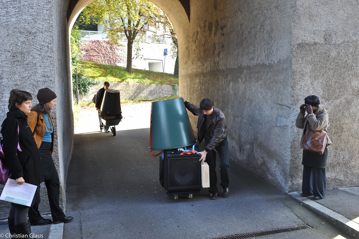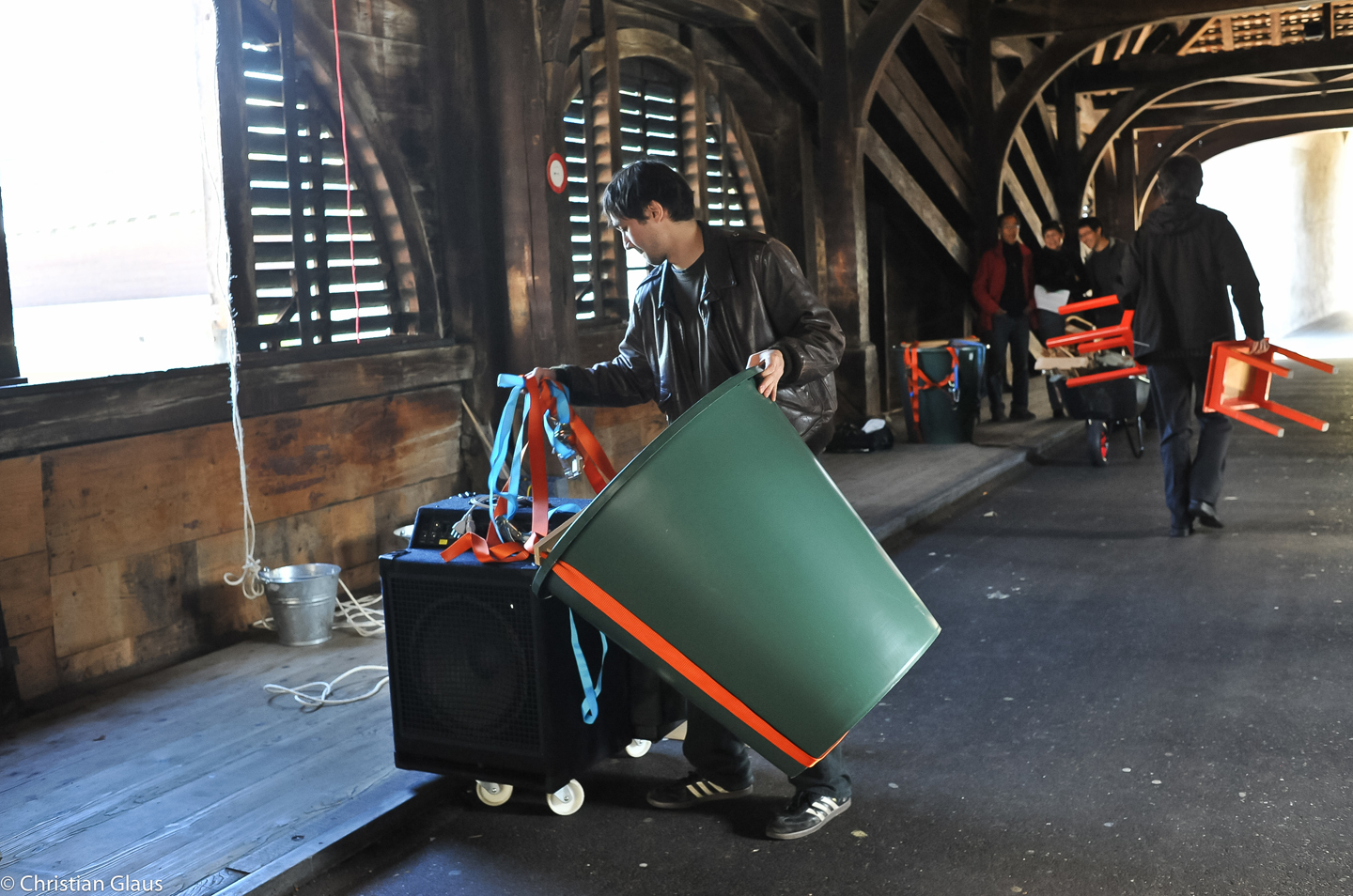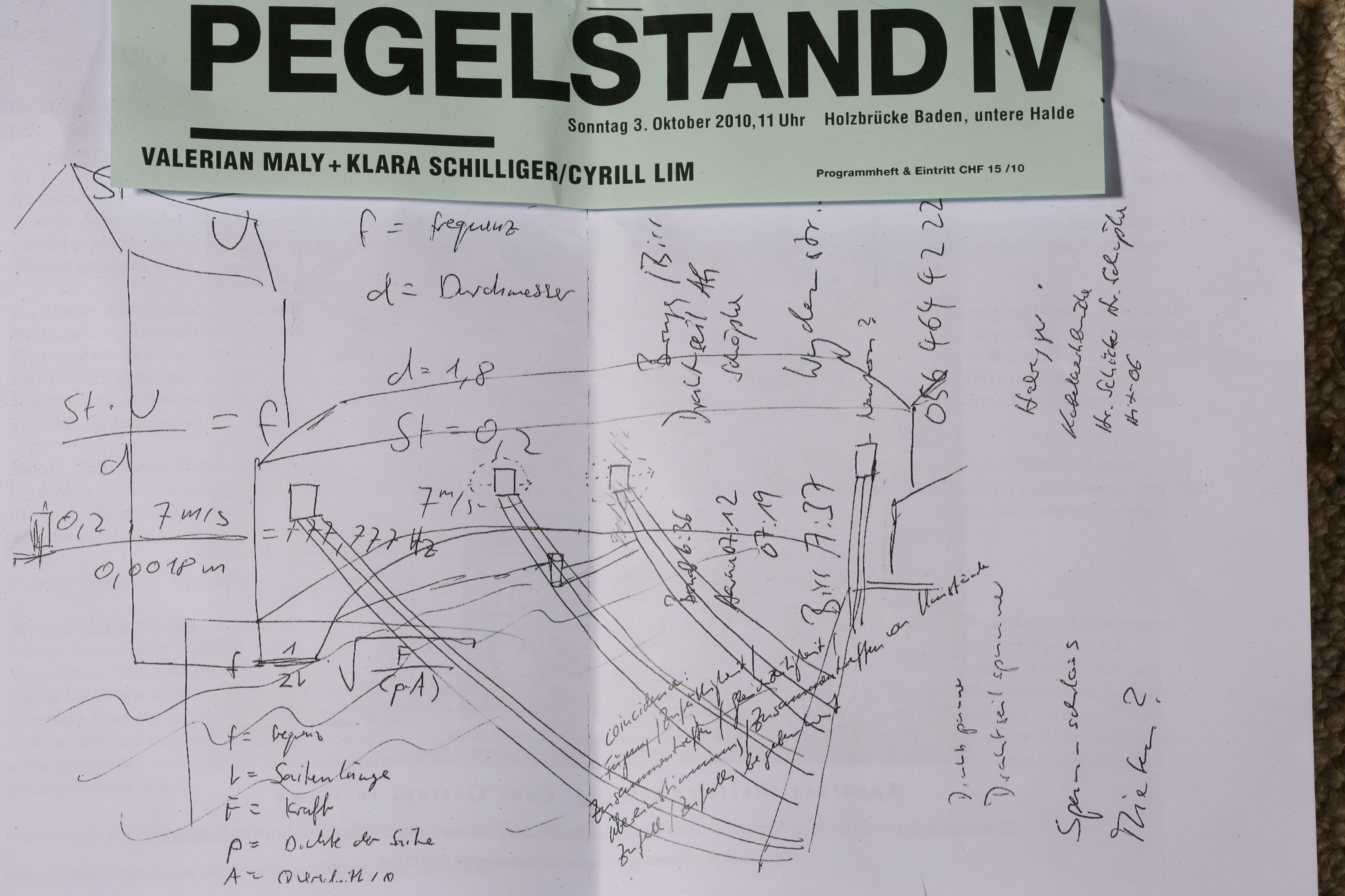 Now Lim, Maly and Schilliger are going right back to the beginnings of cultural history and instrument making. During the performance ‘Coincidence’, the bridge becomes a musical bow, resonance chambers are explored, and instead of wind and weather, the water of the Limmat is expected to make the strings vibrate. A kind of archaic music machine is being built here, possibly even reaching the next level of instrument making: the bridge piers become frets, the bridge gate becomes the bridge. But going back to the beginnings of cultural history also means learning what it means to build, invent and create collectively. How can we make use of the accumulated compost heap of historical, physical and instrumental technical half-knowledge, or do we want to pretend we know nothing? At what point does abundance begin to be produced across the river, at what point does specialisation come into play?
