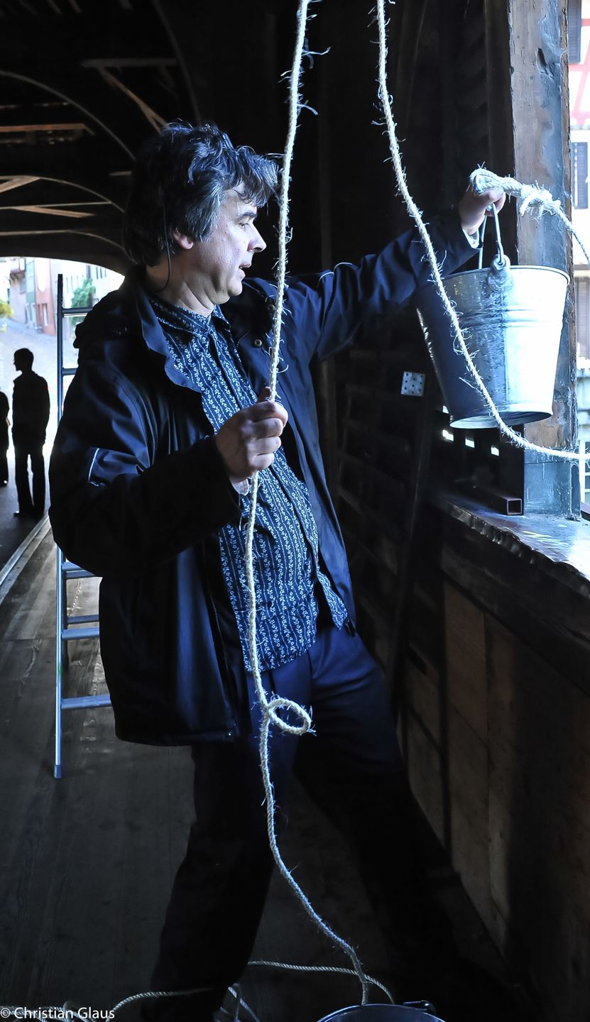 Cyrill Lim, Valerian Maly and Klara Schilliger failed miserably in their ambitious attempt to recreate Gattoni's giant weather harp on the old wooden bridge in Baden in a kind of historical reconstruction. Several tonnes of pressure – generated by the tension of the strings – would probably have caused the wooden bridge to collapse.