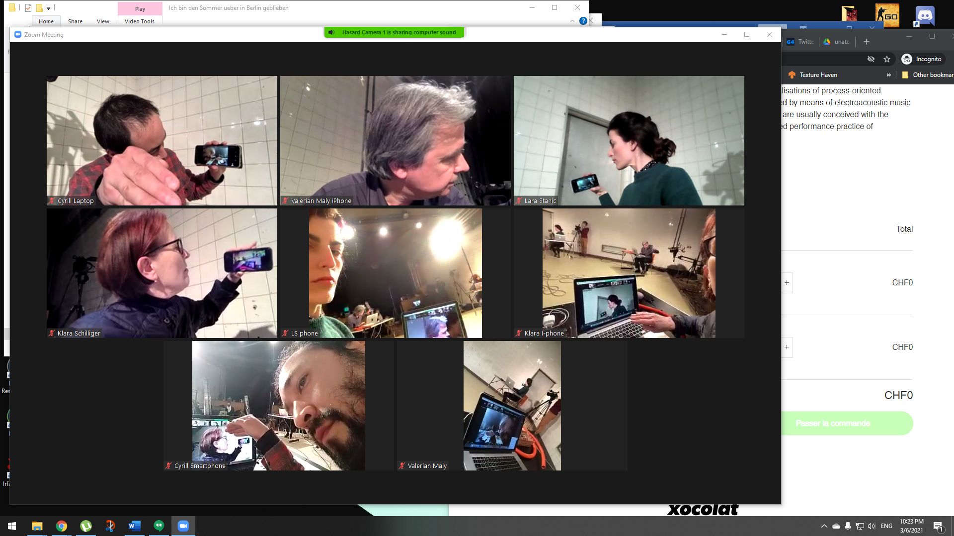 Streaming performance for the Hasard Live Stream Festival Fribourg, with the GingerEnsemble
