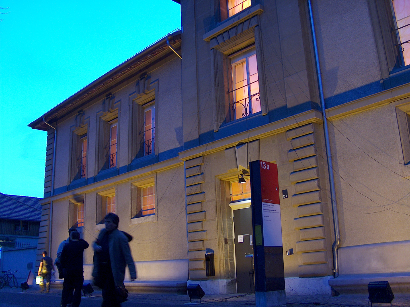 This sound and light installation was designed for the window front of the Bern University of the Arts at Papiermühlestrasse 13 on the occasion of the 2010 Bern Museum Night.