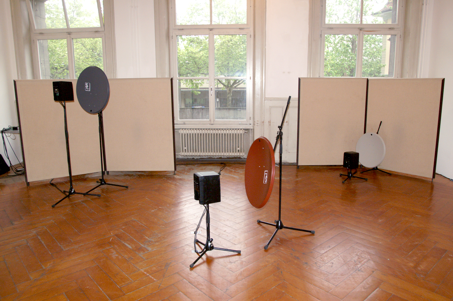 Sound installation for five loudspeakers directed by satellite dishes