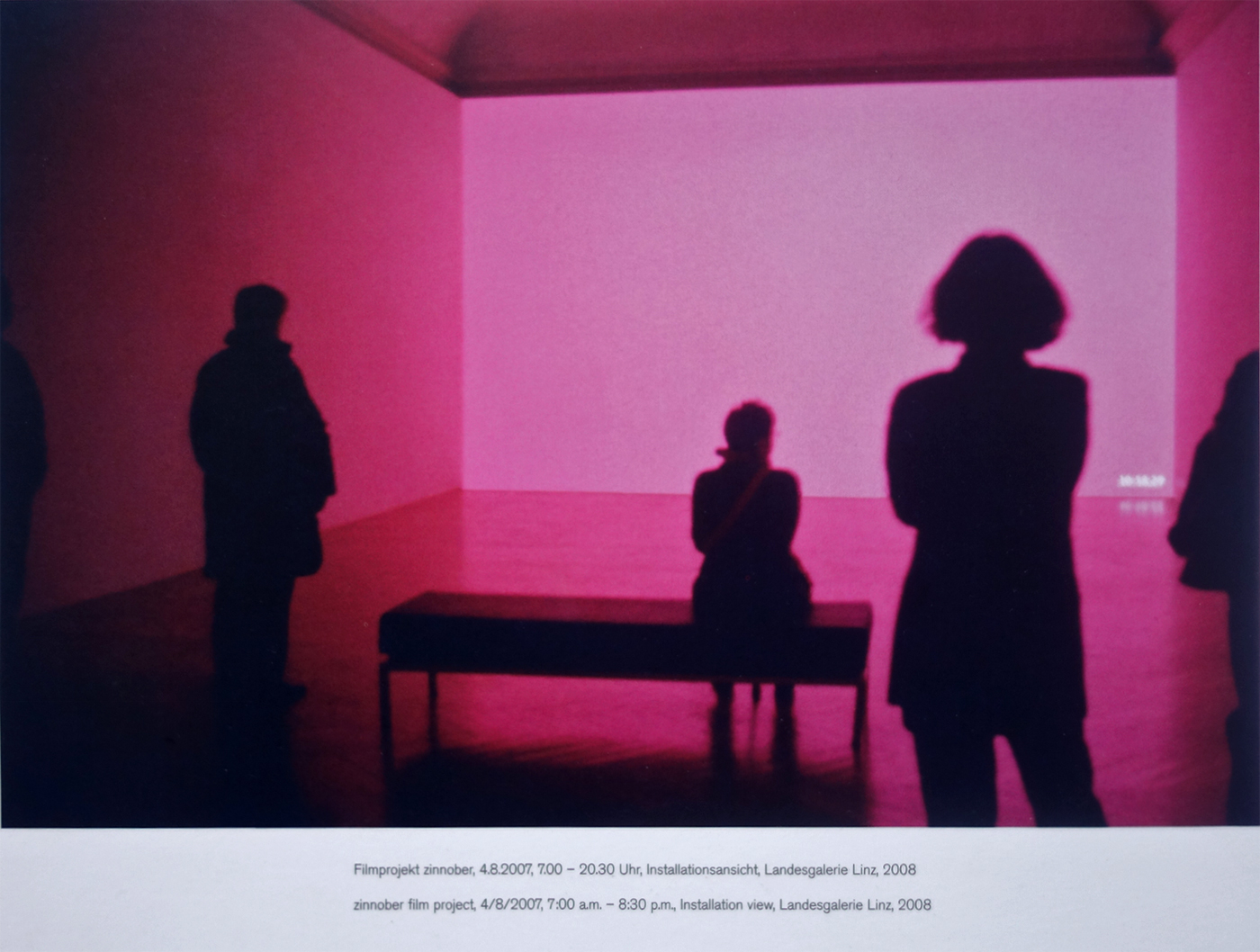 The sound installation zinnober, developed in collaboration with Roland Dahinden in 2007, was exhibited in 2008 in the solo exhibition of artist Inge Dick at the Landesgalerie Linz (Francisco Carolinum Linz), in 2021 at the Museum Konkrete Kunst Ingolstadt as part of the exhibition Raum - Licht - Zeit: Inge Dick and in 2026 at the Landesgalerie Niederösterreich within the retrospective: Inge Dick – Touched by light together with Inge Dick's video work zinnober.